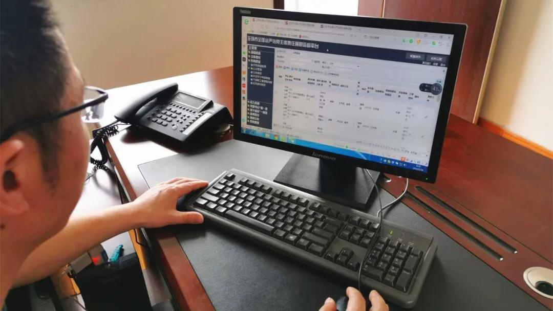 △玉環市紀委市監委派駐第五紀檢監察組檢查人員通過全面從嚴治黨履職監督平臺分析比對每一季度公務接待數據。