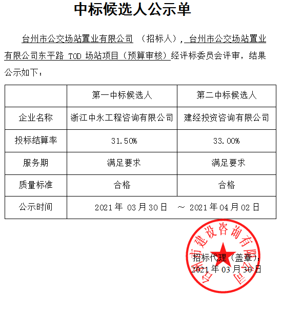 中標候選人公示單
