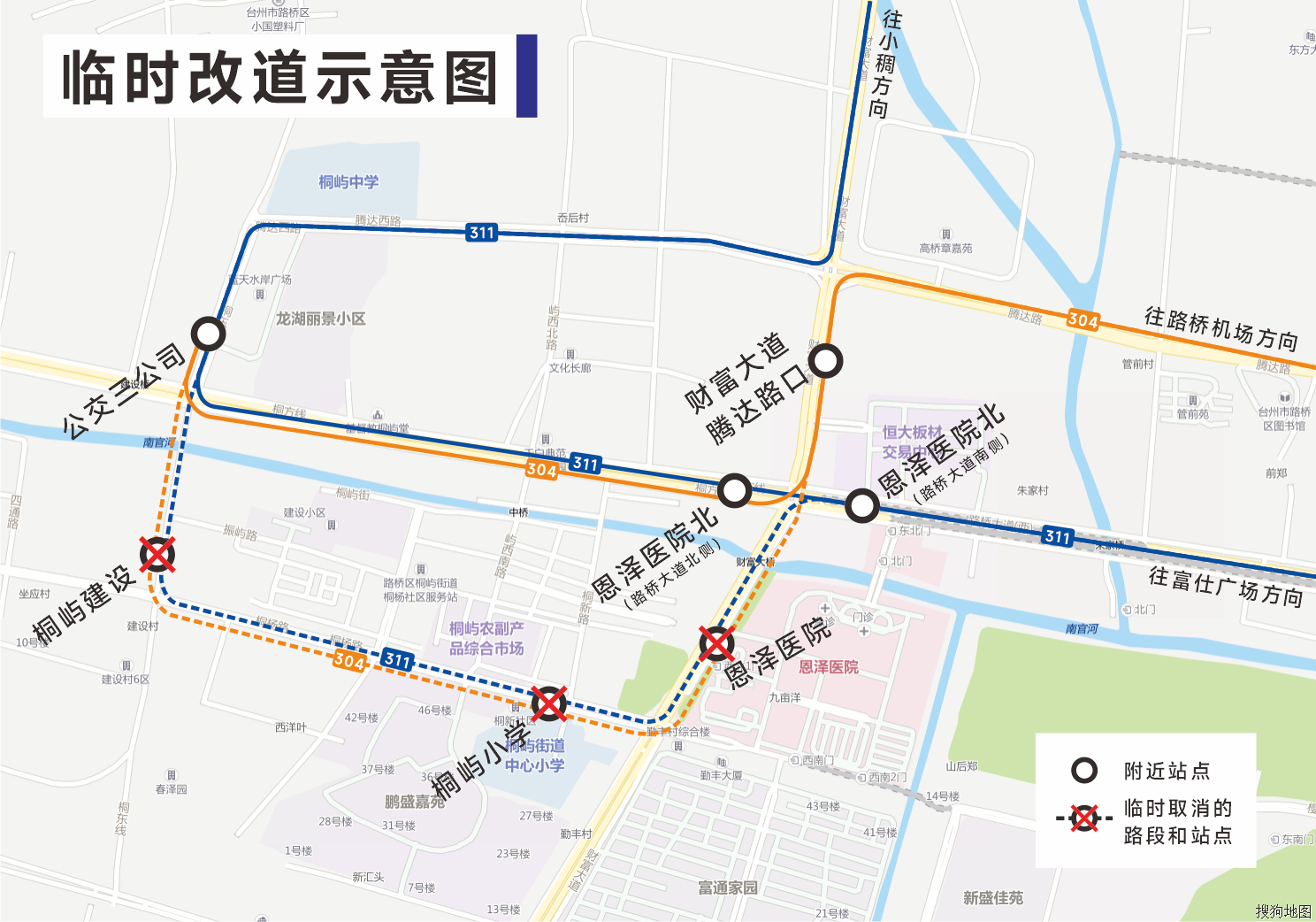 受桐東線(路橋大道--文化路段)道路綜合改造提升工程封閉施工影響。即日起,途經該路段的304路、311路等兩條公交線路將臨時改道,雙向由桐東線、桐楊路調整至路橋大道運行。改道后臨時取消??客Z建設、桐嶼小學、恩澤醫院共3對站點,臨時增加??慷鳚舍t院北站點。