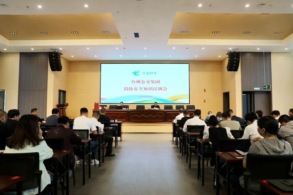 本次會議邀請椒江區消防救援大隊宣傳干事朱鮫泓前來授課。集團領導班子,公務用車公司,校車公司,巴士公司各車隊、修理公司,公交TOD大廈在崗職工等近200人參加會議。集團黨委委員、副總經理、首席安全官黃正省主持會議并講話。
