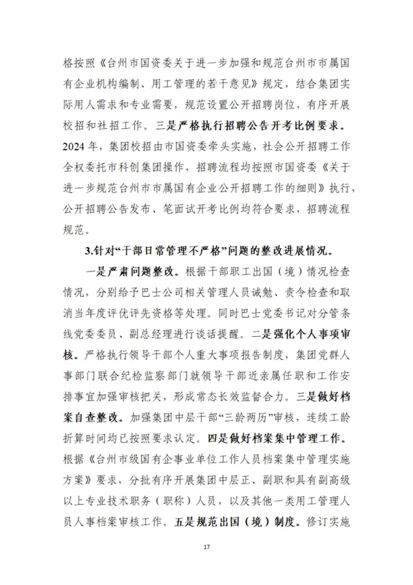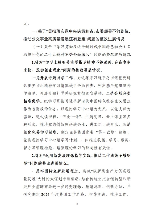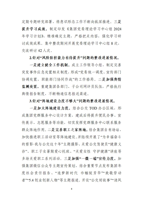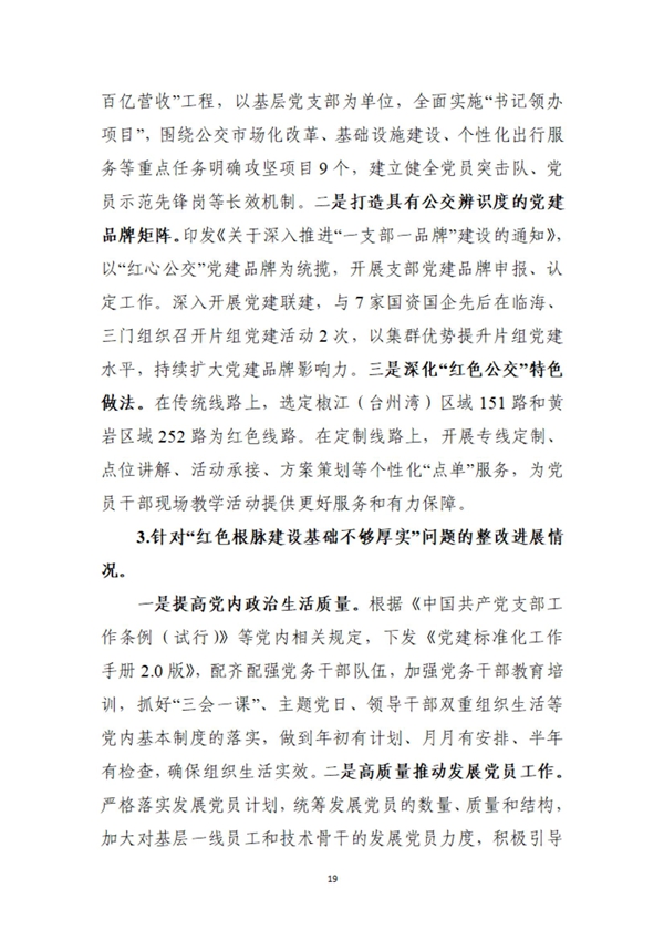 中共臺州市公共交通集團有限公司委員會 關于巡察整改進展情況的通報