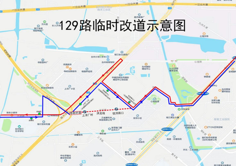 因洪龍線與臺州大道口封閉施工需要,自2025年2月15日起途經施工路段的129公交線路將作如下臨時改道調整: