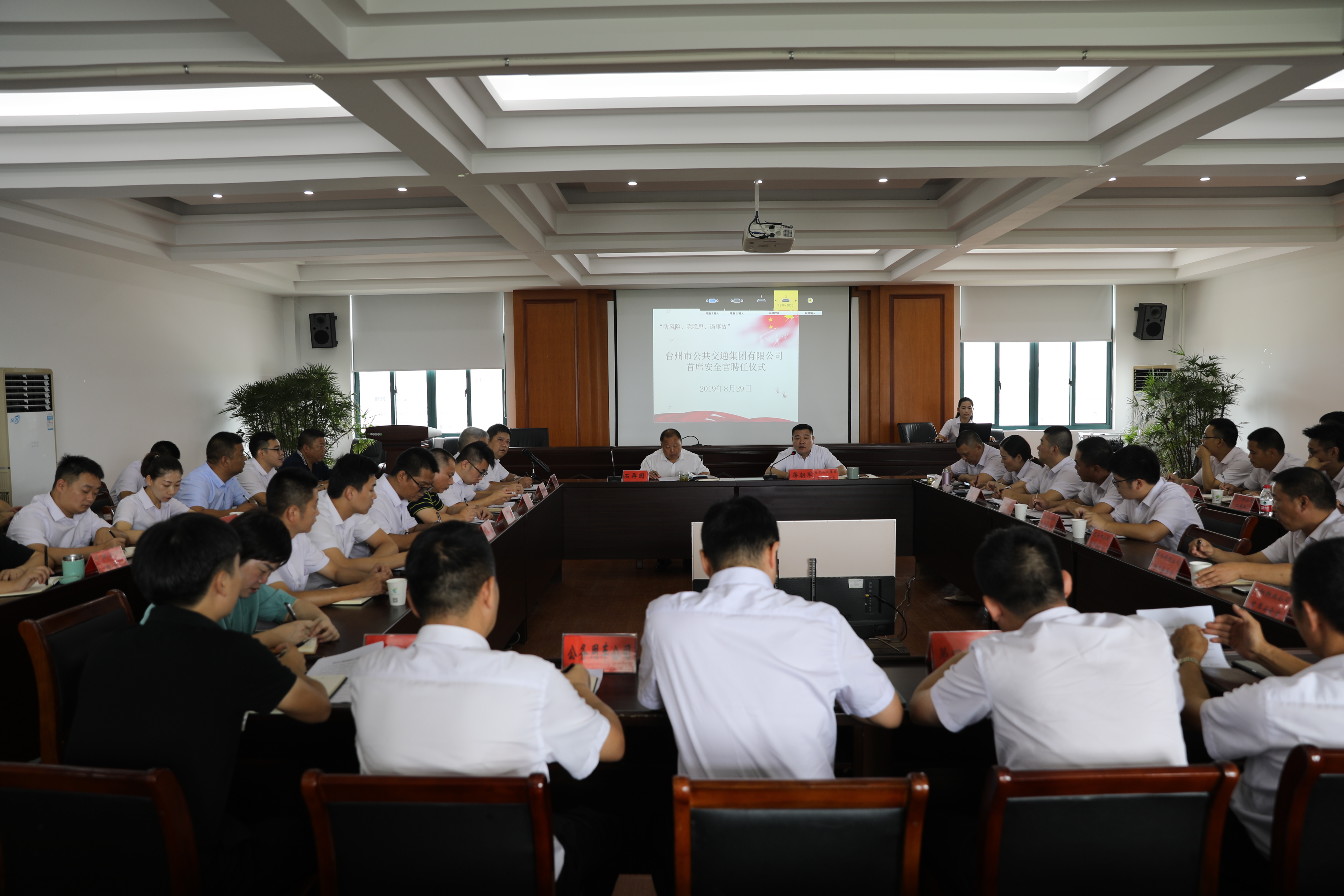 8月29日上午,臺州公交集團舉行首席安全官聘任儀式暨糾正和克服防汛防臺“四種錯誤思想”大討論活動。集團黨委書記、董事長兼總經理石再國,集團黨委委員、副總經理蔣朝軍,集團各級首席安全官,集團相關部門、分(子)公司、車隊相關負責人出席了此次會議。
